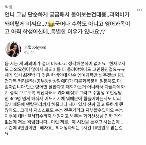저러고 과외비 1시간에 4만원 받았다는게 더 웃김
