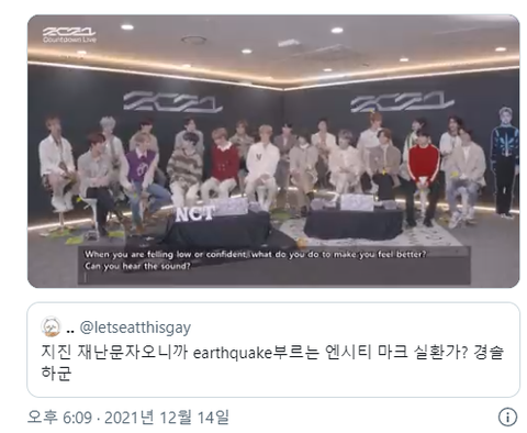 방금 엔시티 라방도중에 지진났다고 재난경보문자옴