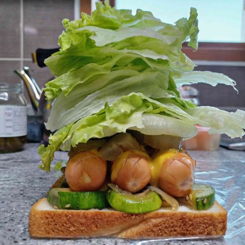 닭가슴살 소세지 샌드위치
