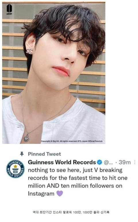 방탄소년단 뷔 기네스북 기록 등재