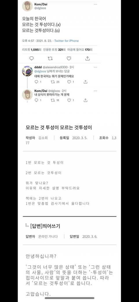 와~~알면 알수록 모르는 것투성이인 국어문법. '한글'자체는 배우기 쉽게 만들어 놨는데, 문법이 너무 어려워.