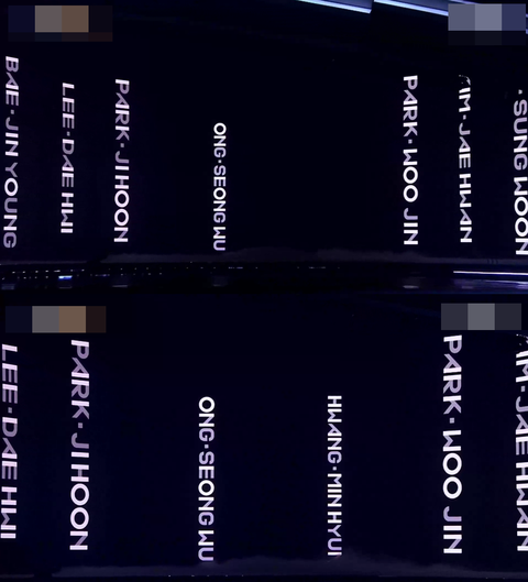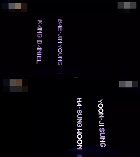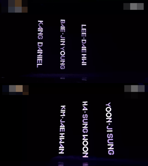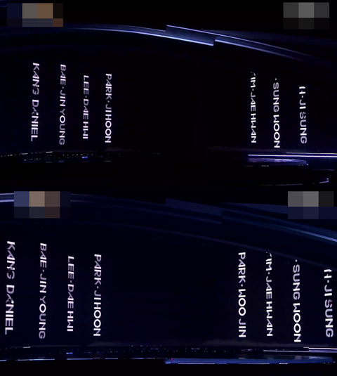 강다니엘→윤지성→배진영→하성운→이대휘→김재환→박지훈→박우진→옹성우→황민현