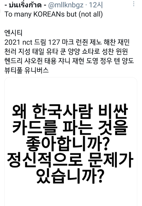 앨범 가격보다 포카를 비싸게 올려쳐서 파는 일부 사람들은 정상적이지 않다는 글이었음