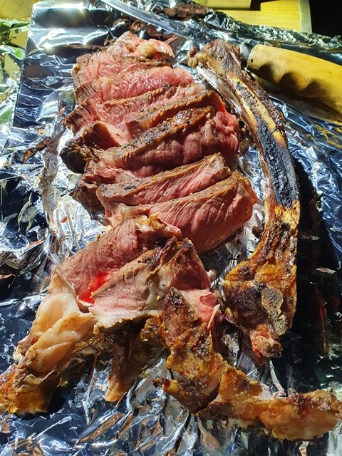 유툽보고 따라해본 토마호크 직화구이입니다. 양념을 한담에 잘 달궈진 깨끗한 숯에다가 직접올리는데, 숯이 식어서 잘 꺼지더라구요~그리고 생각보다 오래 올려놓고 있어야 합니다. 결론은 그릴이 있다면 그릴직화가 더 낫다~ 입니다.