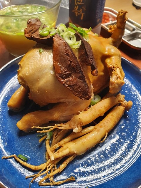 상황버섯인가... 뭔가 노란색나는 버섯넣고 푹 끓인 토종삼계탕....에다가 막걸리입니다.