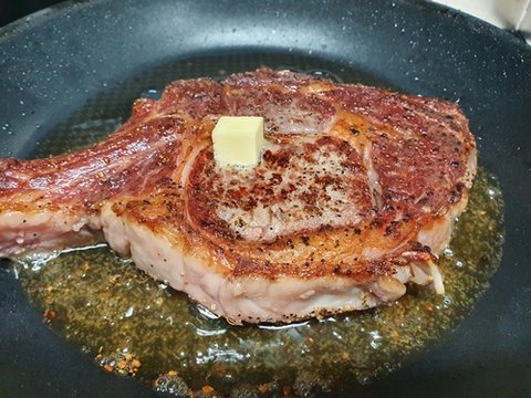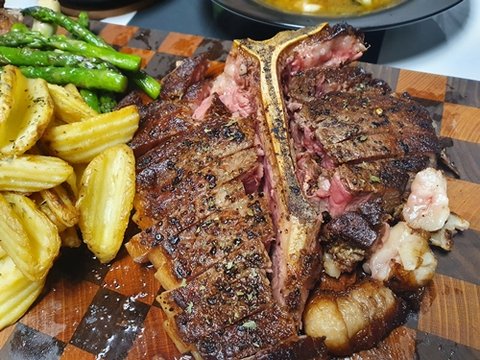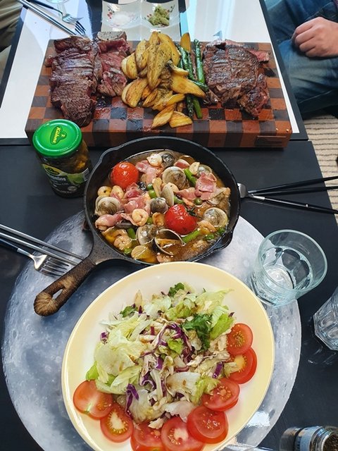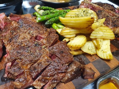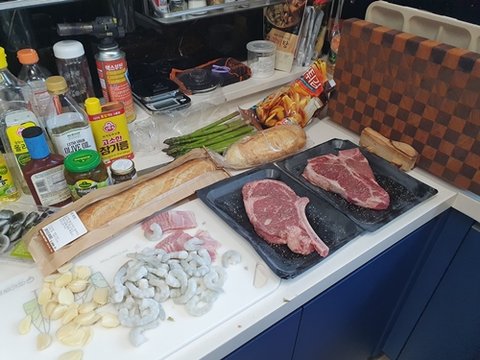 집에서 구운 토마호크와 티본스테이크입니다. 가격은 좀 나가지만 요리하기 간편하고 감바스와 함께 집들이 요리로 제격인거 같습니다.