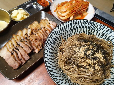 막국수를 엄청좋아하는데 인터넷 보다가 들기름 막국수라는게 있다는걸 알았습니다. 직접가서 먹어보고 싶었으나 혼자 굳이... 다행히 인터넷에 밀키트를 판매하더라구요. 사진보고 대충 수육도 삶고 해서 먹었는데 느끼한 음식을 좋아하는 저에게는 너무 맛있었습니다ㅋㅋㅋ