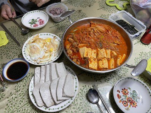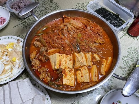 남편과 아빠와 손두부와 김치찜을 해먹었습니다.