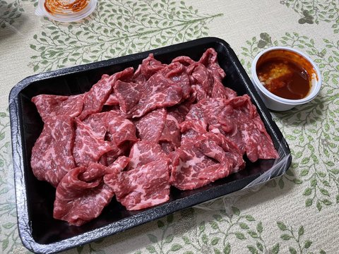 집 앞에 있는 정육점 금토일 육사시미, 육회 판매하고 있어서요.