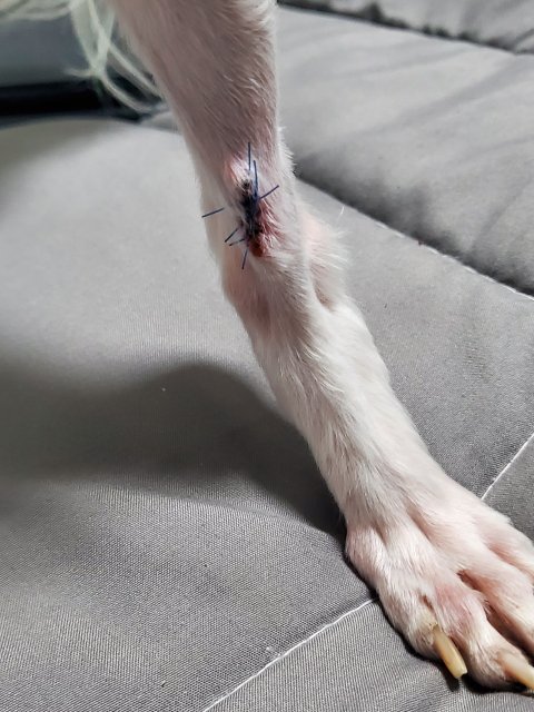 저희는 반려견 뒷다리에 피부가 찢어져 있고 피도계속나서 반려견이 아플걸 알지만 꼬매야겠다고