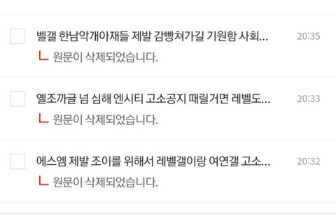 글삭한거 조카 찌질하다시바 아재요 인생 그따구로 살지마세요 도대체 판녀들도 그렇고 조이가 느그들한테 뭘그리 잘못함? 죄없는애 작작 괴롭히라고 이러는거 저 벨갤악개들이랑 판녀들이 빠는것들한테 다 돌아가길 부메랑 꼭 처맞길ㅅㅊ