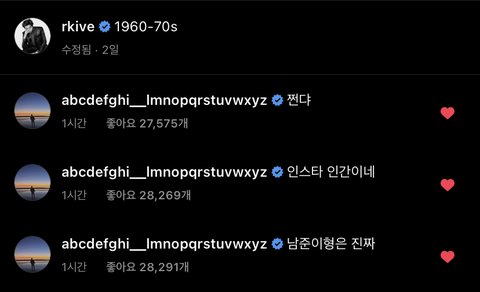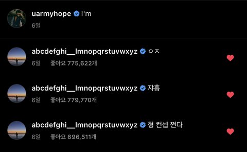 전정국 인스타 댓글 개귀여워