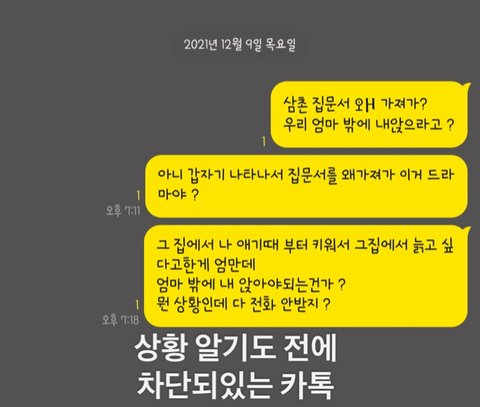 왜 말 안했냐니까 코로나때문에 예민해서래요.말이 뱉으면 다 말인줄 알아요.또 숙모가 툭하면 이혼한다고 그렇게 입버릇처럼 말했어요.저희 할머니 할아버지 그래도 뭐라 안하시더라구요.삼촌 이혼당할까봐 그게 걱정됬데요 .. 참나..