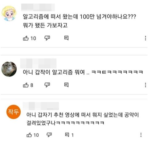 영문도 모르고 알수없는 알고리즘에 의해 100만 넘겨야 한다니까 보는 사람들 속출ㅋㅋㅋ