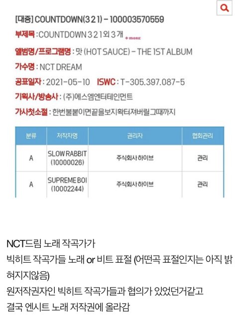 그 전에는 엔시티 드림 쪽에서 투바투 블루오렌지에이드라는 노래 속 비트 표절해서 이 사달이 났었음