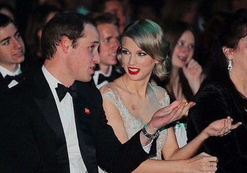 테일러가 윌리엄 왕자 팔에 손을 얹고 눈을 맞추면서