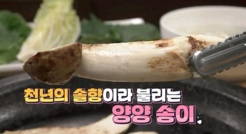 양양 자연산 송이를 다들 하나씩 먹어보는데