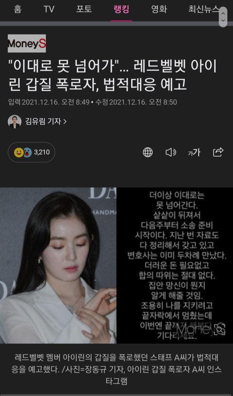 야..아이린 뉴스 기사 떳는데?