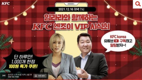 유튜브 kfc 라방에서 오늘 저녁 7시에 100원 쿠폰 쏜대