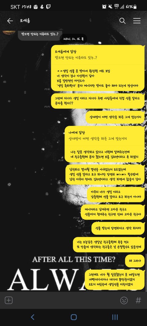 전남친(글쓴이)는 선물대신 욕을 선물함
