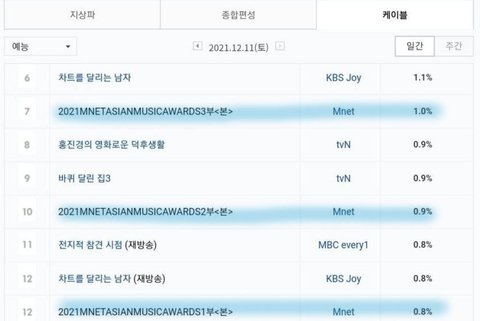 3. 최근 MAMA 시청률 평균 0.9% (2010년대에는 1.2%는 기본으로 넘김)