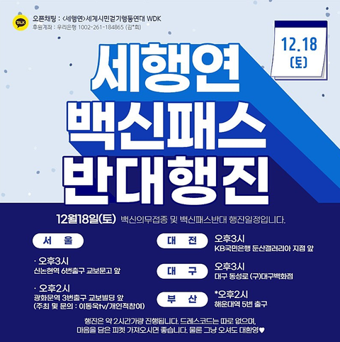 참여유무와 관계없이 여기저기 퍼트리기라도 해주라 ㅠㅠ 또 실질적으로 백신패스 막을수있는 현실적인 방안 뭐가있을까..