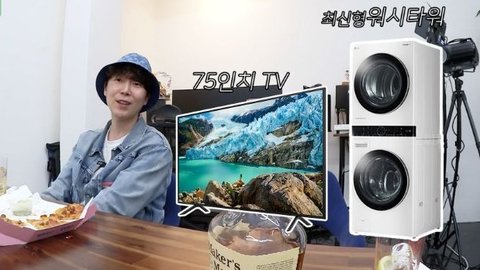 75인치 TV랑 최신형 건조기 세탁기 붙어 있는 거 받음