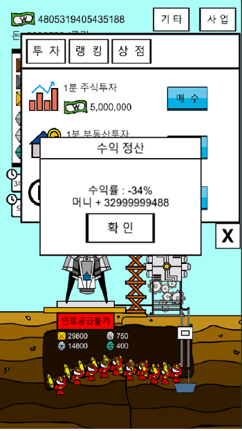 클릭 과 로케트발사로 머니를 번후에 투자를 하거나,