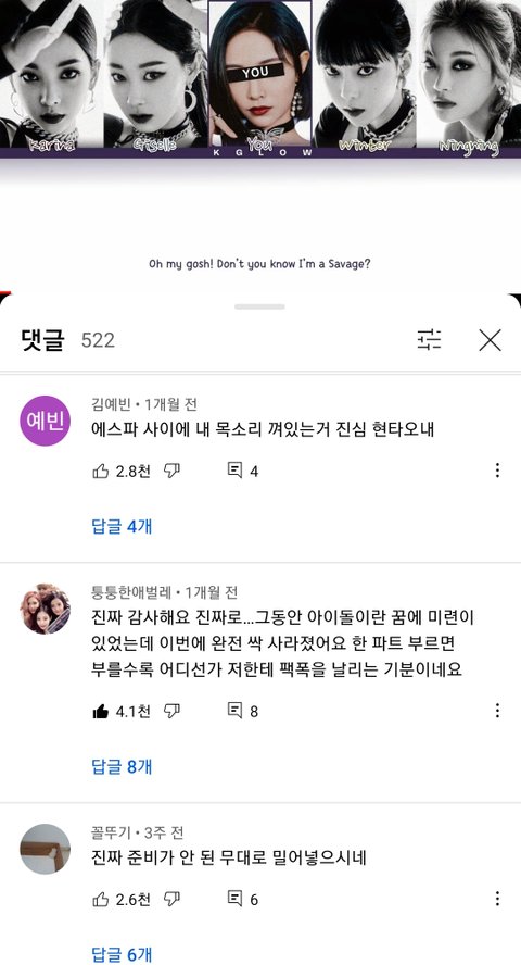 댓글창 ㅈㄴ웃겨 다른아이돌들껏도 개웃겨 한번 봐봐 Kglow 치면 나옴