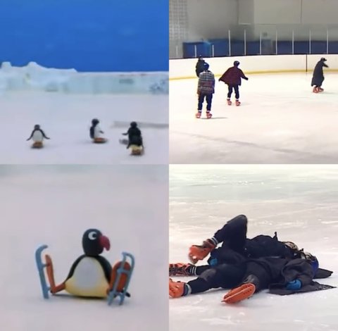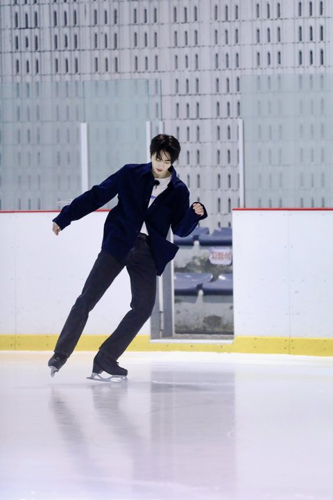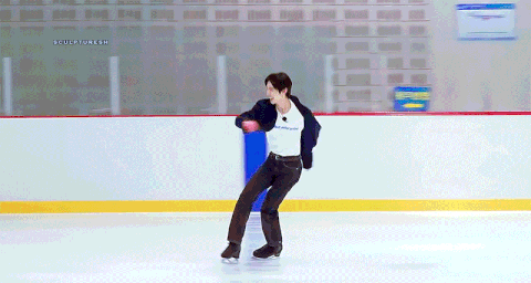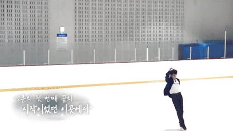 멤버들은 빙상장 스케이트 신고있는데 혼자만 선수 시절 신었던 피겨화 신고 있음ㅠ