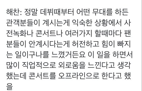해찬이가 팬들 보면서 진심 꾹꾹 담아