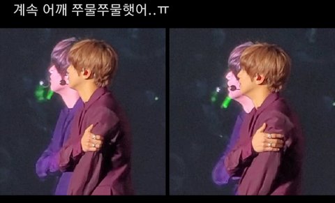 어제 가요대축제 무대볼 때도 어깨 잡더니 하...아프지 말어라ㅠㅠ