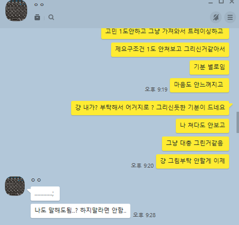 내가 부탁한거 반영 1도안하고 트레이싱 해줘서 기분상해서 한마디했더니