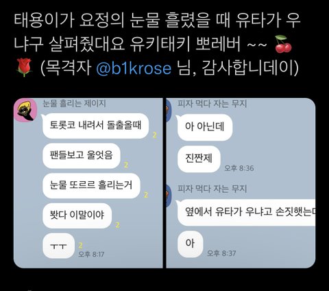 태용이 울었을때 유타가 살펴봐줬대 ㅠ