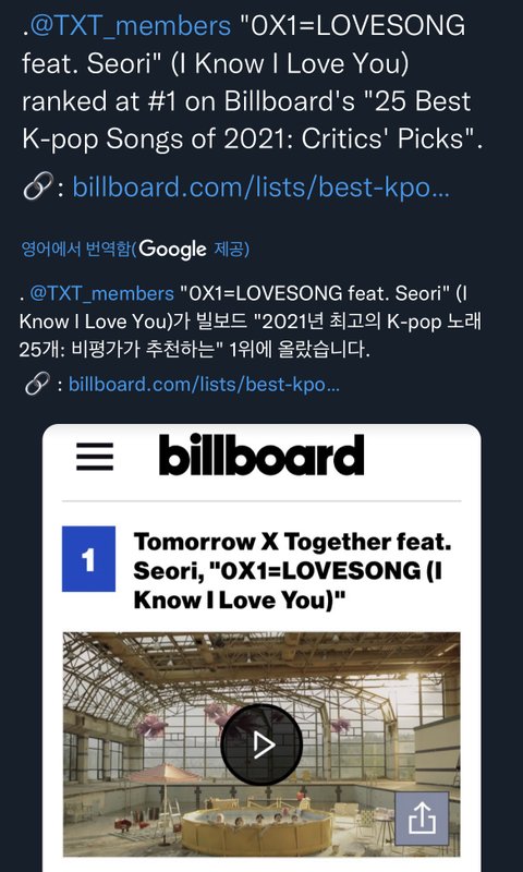 2021 빌보드 최고의 k-pop 25곡중에서 비평가가 추천하는 곡 1위 943때 4위 세불밤때 16위 그리고 올해 1위