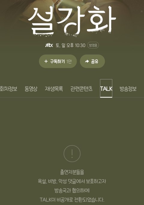 시청자 반응좀 보려했더니 네이버TALK도 막아놨네...