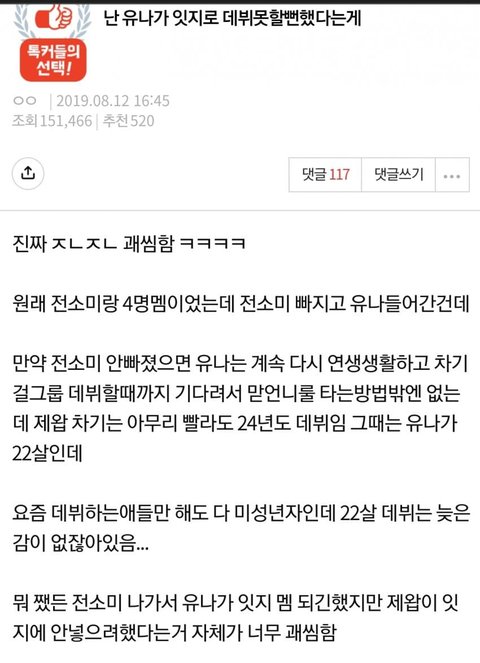 여기에 유나외모까지 더해지면 진짜 4세대는 다 씹어먹을거 같은데 아쉬움