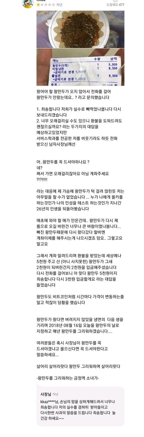 장사가 하기 싫은 냉면집 사장님