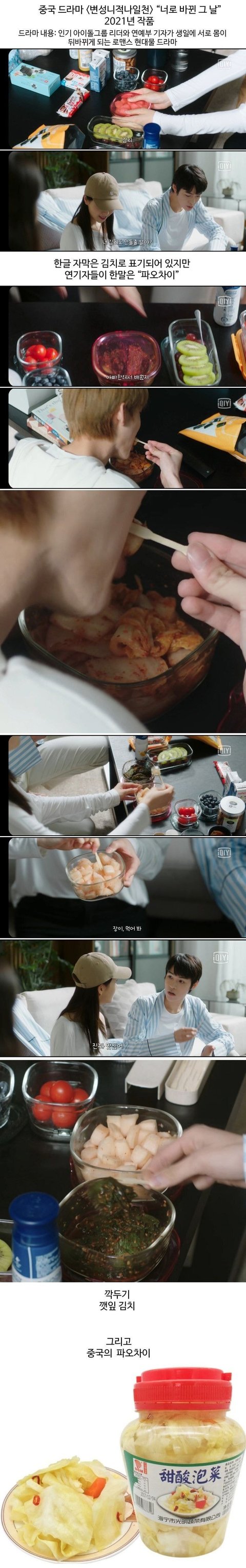 최신 중국 드라마에 나온 배추김치,깍두기,깻잎김치