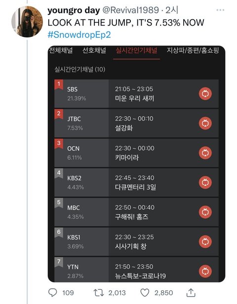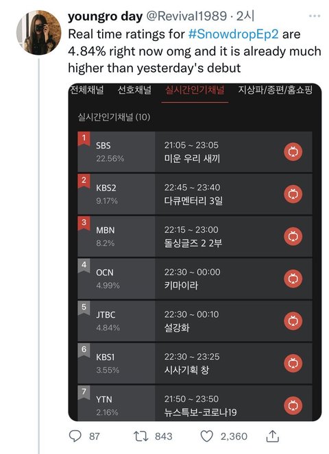 설강화 2화 시청률 1위한줄 알고 신난 외국팬들