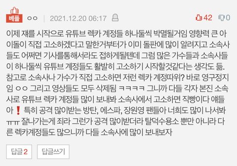 쟤 쫄려서 바로 커뮤니티에 헐레벌떡 글 올리던데 ㅋㅋㅋㅋ 가수가 직접 언급하는건데 고소가 안되겠냐고~~~~