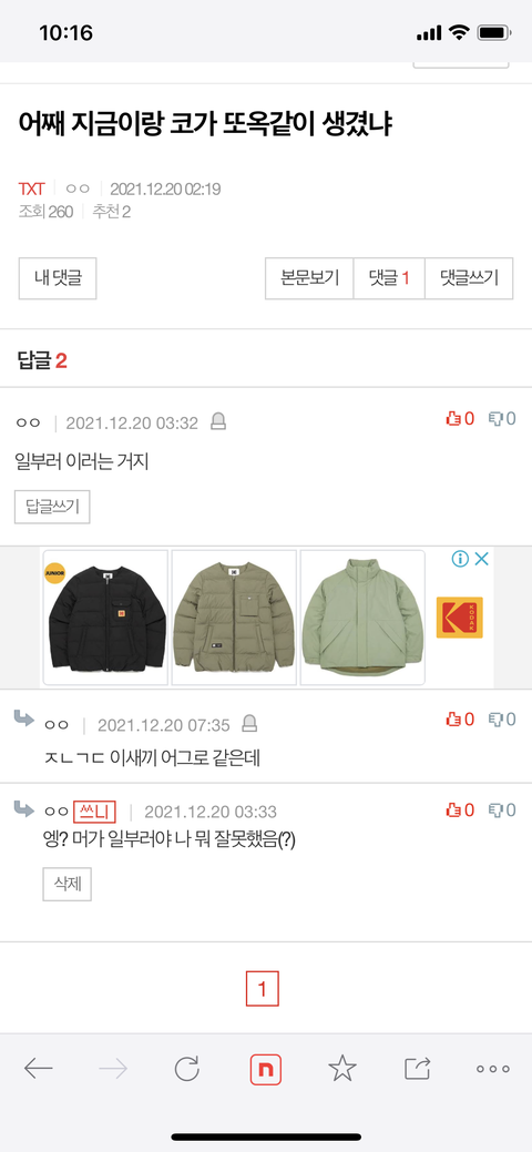 나 잘못했어 진짜..? 아니 코 이쁘다고 올린 건데 다들 나보고 어그로래