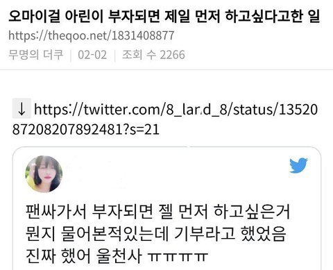 진짜 판에서 까이는거 아무 의미 없다니까ㅋㅋㅋㅋ 방구석 정병들이 악풀쓰면서 ㅂㄷㅂㄷ거릴 시간에 아린은 갓생살면서 올해에 기부만 6000만원 넘게 하고 진짜 최아린 너무 멋져