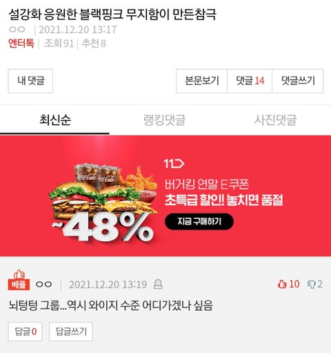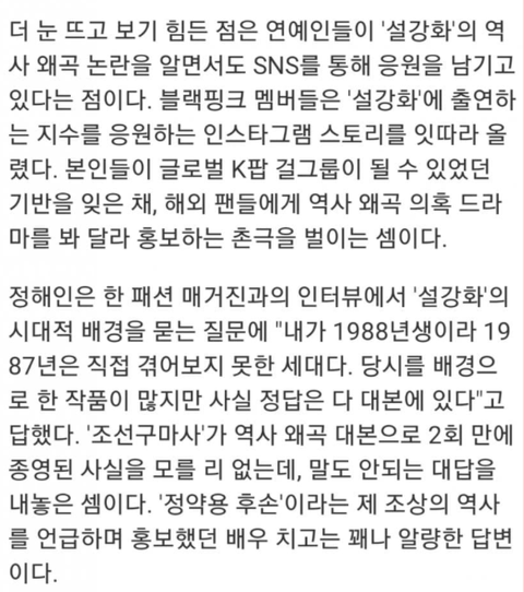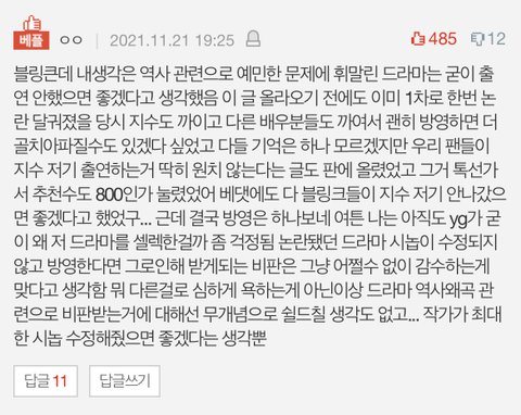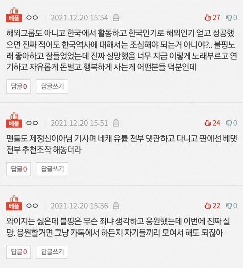 그런데도 블핑팬들은 다른배우들은 안까고 블핑만 깐다며 베플조작 해놨던데