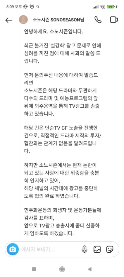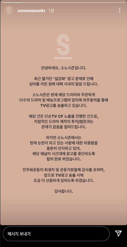 설강화 광고 관련 소노시즌 인스타그램 DM + 스토리