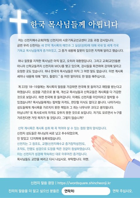이토록 연일 언론기사로 알리고 있건만,,,,, 묵묵부답인 대한민국 목사님들이시여!늦으면 늦을수록 고귀한 시간을 흘려보낸 게 아깝지 않겠습니까?!!!정녕 유구무언이시옵니까?