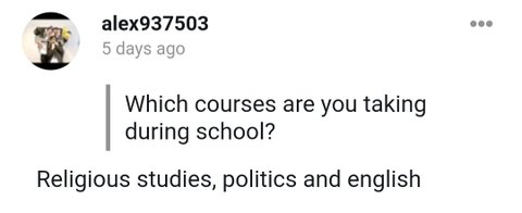 알렉스가 듣는 과목은 종교, 정치, 영문학