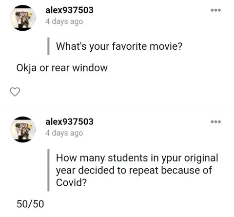 그리고 코로나로 유급한 학생이 몇명이냐는 질문에 50/50 라고 대답했는데 이번년도에 에이레벨 성적표 받고 졸업한 학생들 있지 않아??