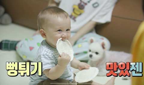뻥뛰기 야무지게 먹으면서도 이모 보기