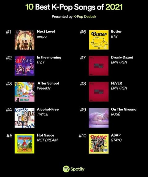 스포티 선정 올해의 kpop top10